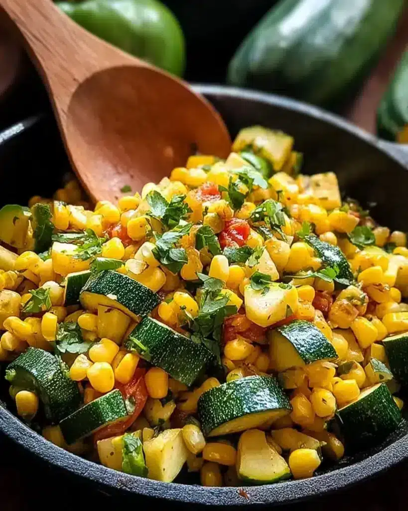 A vibrant and comforting dish combining tender zucchini and sweet corn, perfect for summer meals.